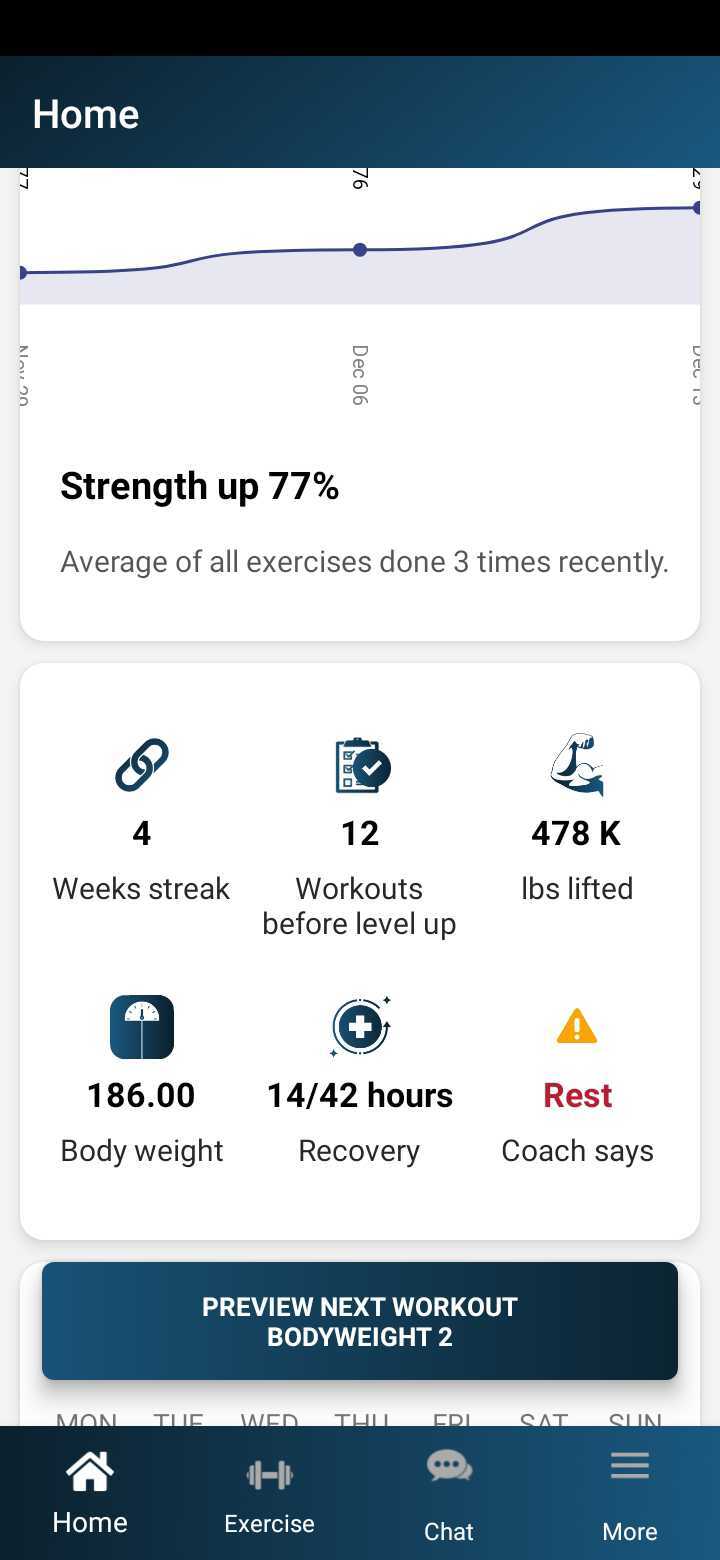 Suggests adjustments and rest ‘de-loads’ based on your individual progress. |
