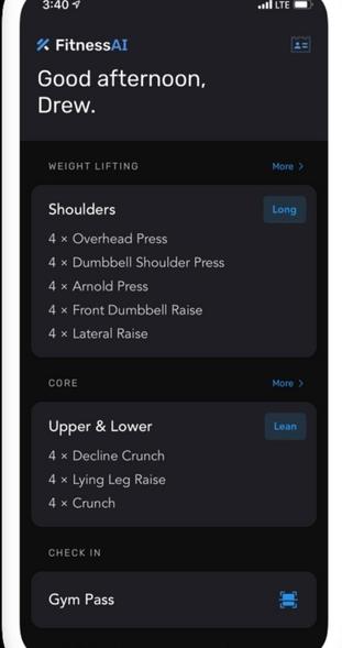 Fitness AI also plans your workout based on your goal. It also provides messaging in app when you need advice from a real person.