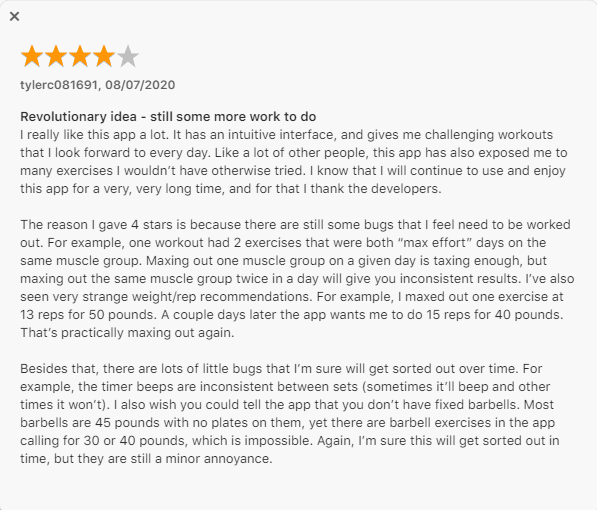 Strong gives you the capacity to construct your own customized physical fitness regimens and store them in the app, yet it does not suggest anything for what should come next. You’ll need to decide for yourself how hard to work out each time so as to gain the sought-after outcome.