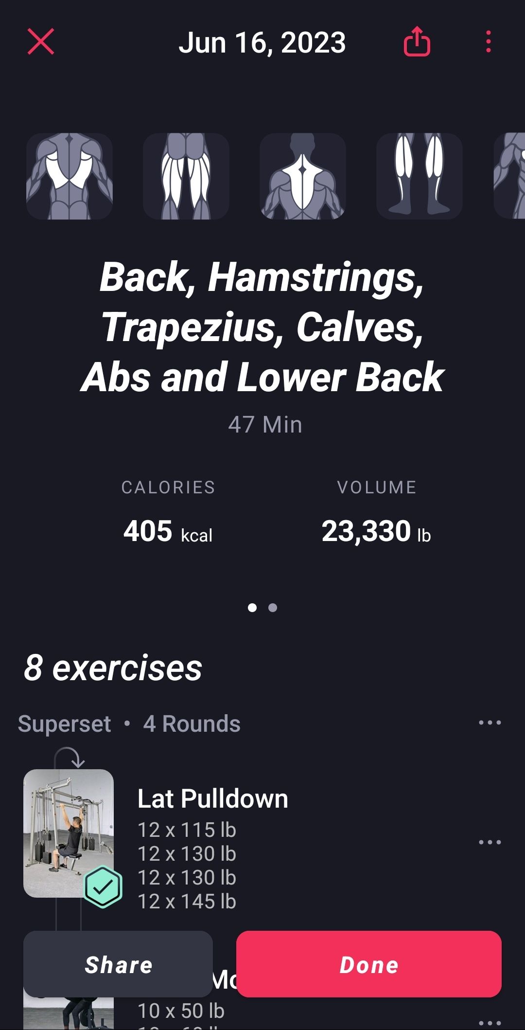 - The summary info (calories, volume, percentage values for worked muscles, etc.) is well presented and can probably be rather helpful and motivating for people who want something to help with direction. A clear “this is what you worked, and this is what you have left to work” kind of flow is likely to appeal to a lot of people.