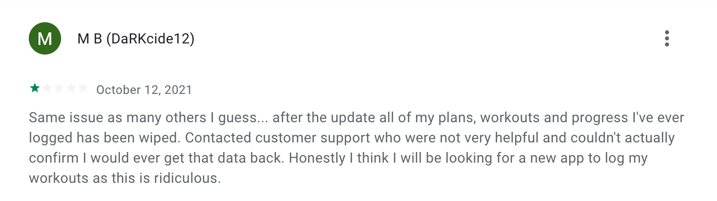 Another technical issue has to do with the app erasing people's data. From reading reviews, this seems to happen extensively after updates.