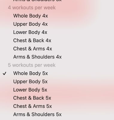 Once chosen, you must fill out your exercises using a drop-down menu for the exercises.
